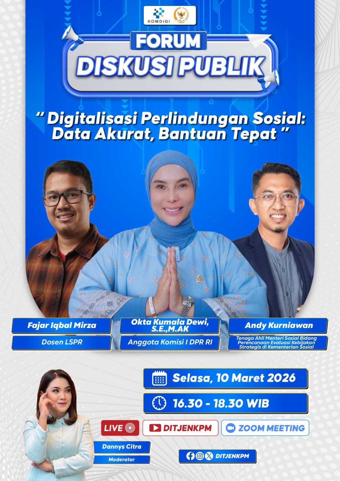 Hal tersebut mengemuka dalam Forum Diskusi Publik bertema “Digitalisasi Perlindungan Sosial: Data Akurat, Bantuan Tepat.”(10/3)