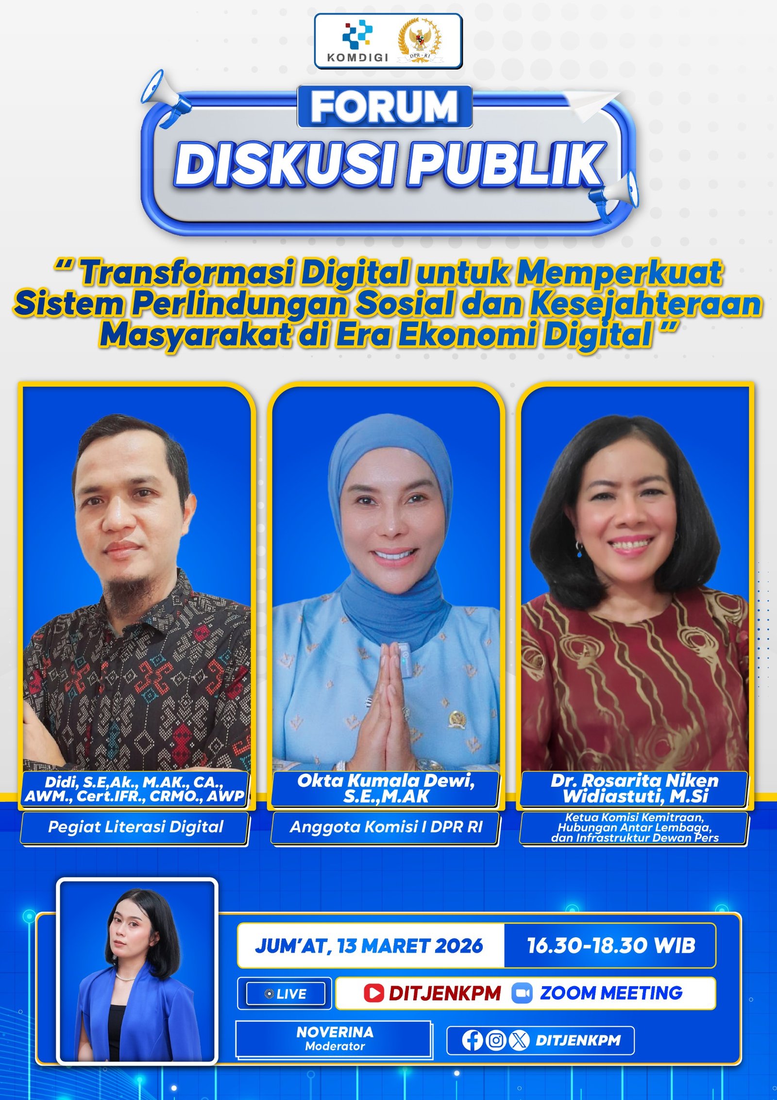 Hal tersebut mengemuka dalam Forum Diskusi Publik bertajuk “Transformasi Digital untuk Memperkuat Sistem Perlindungan Sosial dan Kesejahteraan Masyarakat di Era Ekonomi Digital.”